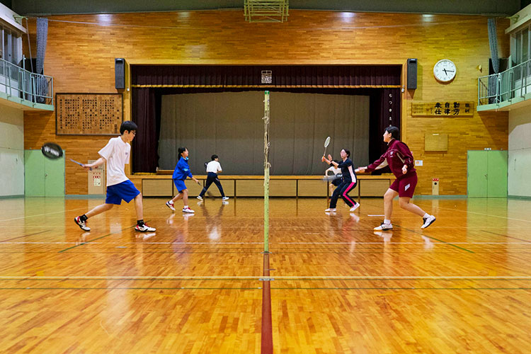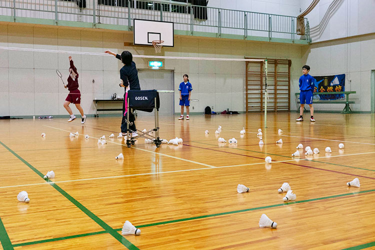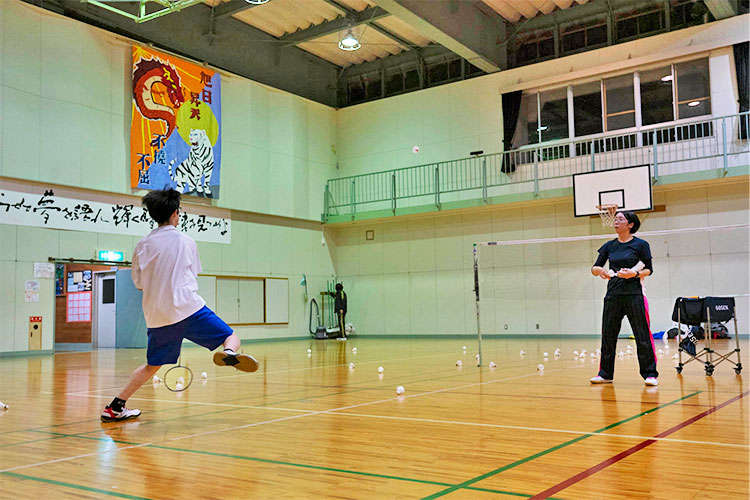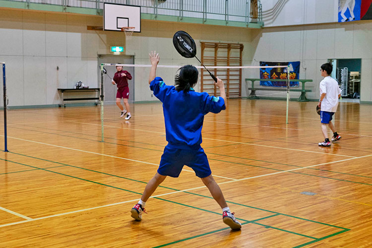 シャトルを打つ爽快感と相手との駆け引きが魅力のバドミントン。基礎練習のほか戦術的な練習など生徒それぞれの目標に合わせた練習が行われ、バドミントンの楽しさとともに、上達する喜びを感じることができます。